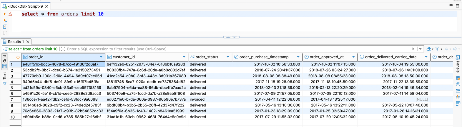 Goal: Ready your SQL environment by querying SELECT * FROM olist_orders_dataset to confirm access.